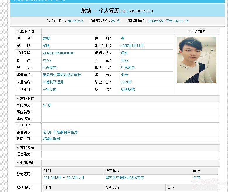 求職..詳細(xì)簡歷,請看附件